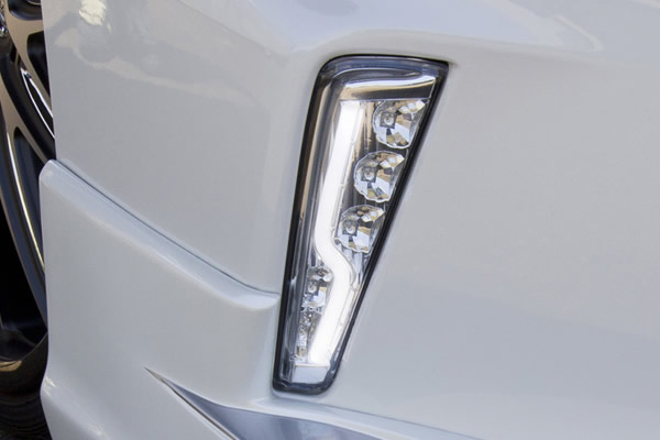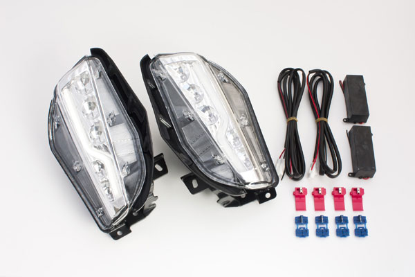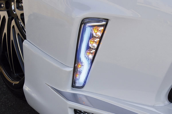 フロントウィンカーにLEDデイライトをユニットしたDRLタイプのバンパーウインカーレンズ。スタイリッシュな曲線型チューブタイプの高輝度LEDデイライトが存在感をアピール。