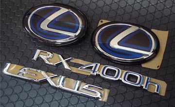 ハリアー用輸出仕様レクサスRX350・RX300・ハイブリッドRX400hエンブレムセット。通常のトヨタエンブレムからレクサス仕様エンブレムに変える定番ドレスアップ。