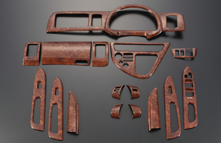 3Dのパネルにより違和感のないウッドインテリアを演出、裏面両面テープ加工済みで貼るだけの簡単装着で手軽にワンランク上のインテリアを演出します。セット品のウッドパネルとして安い上、多数の点数が用意されフルウッドの車内で、より格調高い内装を簡単に手に入れることが可能なウッドパネルセット。