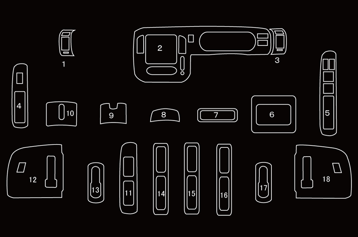 3Dのパネルにより違和感のないウッドインテリアを演出、裏面両面テープ加工済みで貼るだけの簡単装着で手軽にワンランク上のインテリアを演出します。セット品のウッドパネルとして安い上、多数の点数が用意されフルウッドの車内で、より格調高い内装を簡単に手に入れることが可能なウッドパネルセット。
