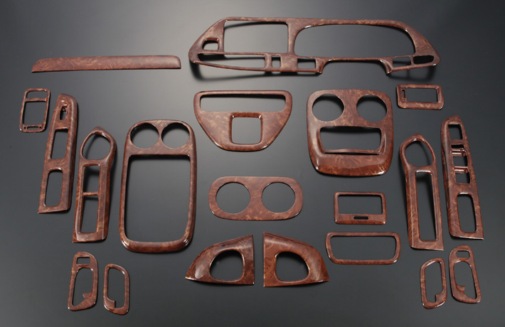 3Dのパネルにより違和感のないウッドインテリアを演出、裏面両面テープ加工済みで貼るだけの簡単装着で手軽にワンランク上のインテリアを演出します。セット品のウッドパネルとして安い上、多数の点数が用意されフルウッドの車内で、より格調高い内装を簡単に手に入れることが可能なウッドパネルセット。