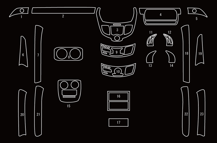 3Dのパネルにより違和感のないウッドインテリアを演出、裏面両面テープ加工済みで貼るだけの簡単装着で手軽にワンランク上のインテリアを演出します。セット品のウッドパネルとして安い上、多数の点数が用意されフルウッドの車内で、より格調高い内装を簡単に手に入れることが可能なウッドパネルセット。