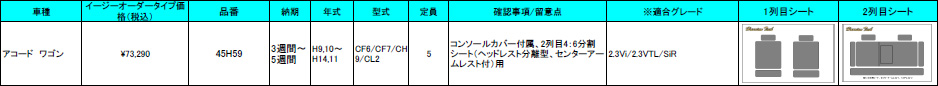 | ハリアンテック アコードワゴン レザーシートカバー イージーオーダータイプ | |||||||||||||||||
