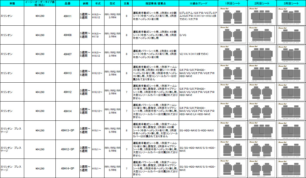 | (要確認) | 下記参照 ・年式 ・グレード ・2列目 | ||||||||||||||||