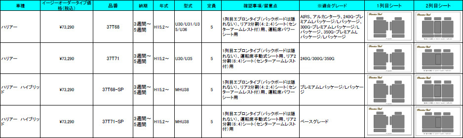 | ハリアンテック ハリアー レザーシートカバー イージーオーダータイプ | |||||||||||||||||