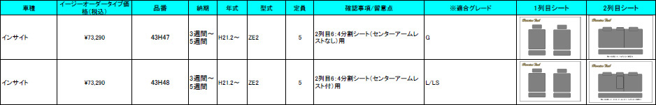 | ハリアンテック インサイト レザーシートカバー イージーオーダータイプ | |||||||||||||||||