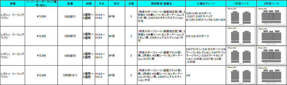 | ハリアンテック レガシィツーリングワゴン レザーシートカバー イージーオーダータイプ | |||||||||||||||||