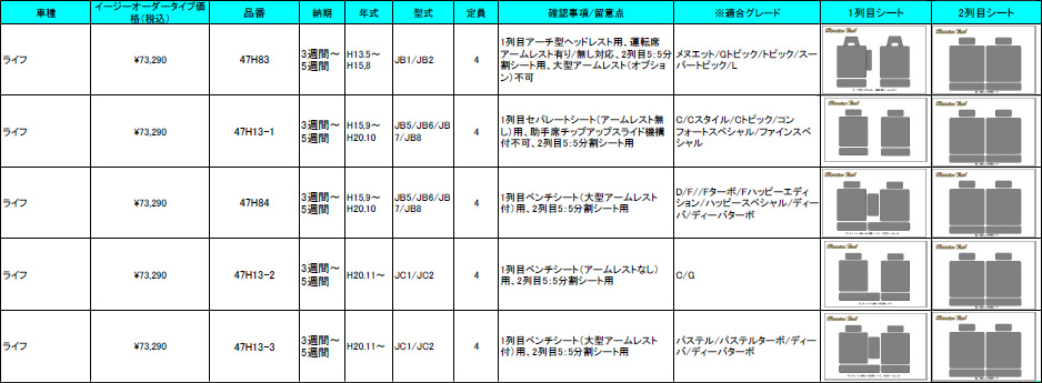 | (要確認) | 下記参照 ・グレード ・1列目 他 | ||||||||||||||||