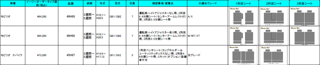 | ハリアンテック モビリオ レザーシートカバー イージーオーダータイプ | |||||||||||||||||