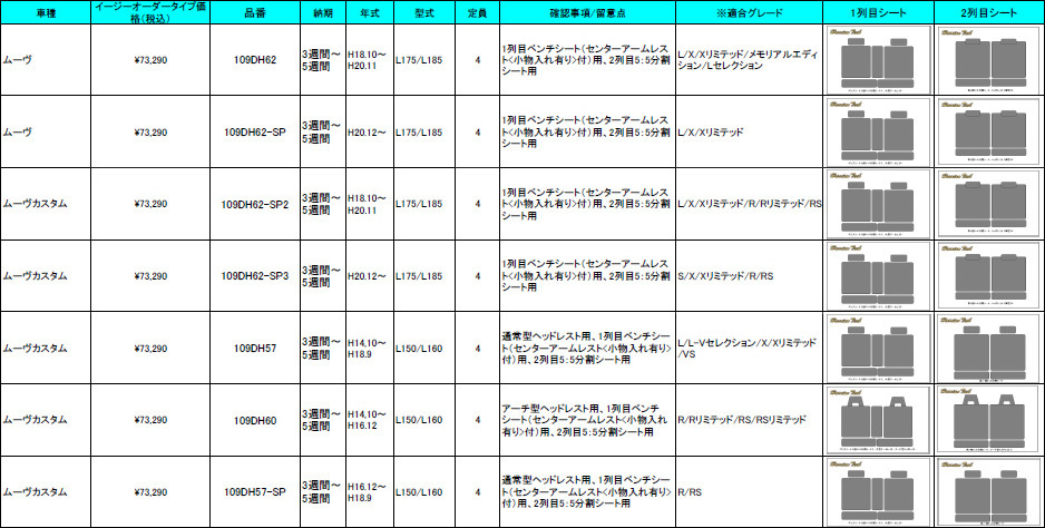 | ハリアンテック ムーヴ レザーシートカバー イージーオーダータイプ | |||||||||||||||||