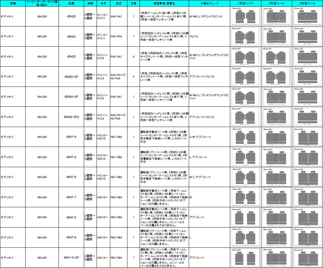 | ハリアンテック オデッセイ レザーシートカバー イージーオーダータイプ | |||||||||||||||||