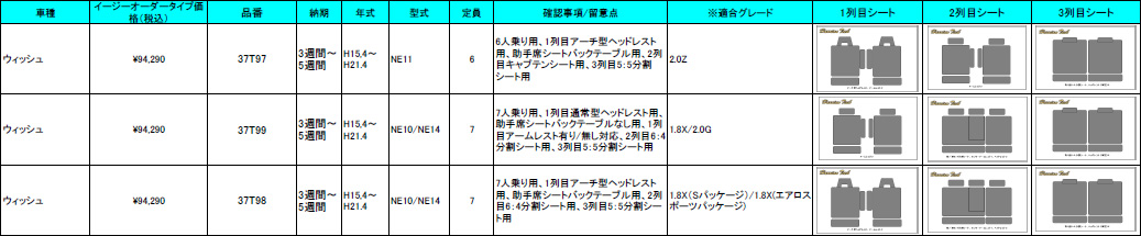 | ウィッシュ仕様確認 | |||||||||||||||||