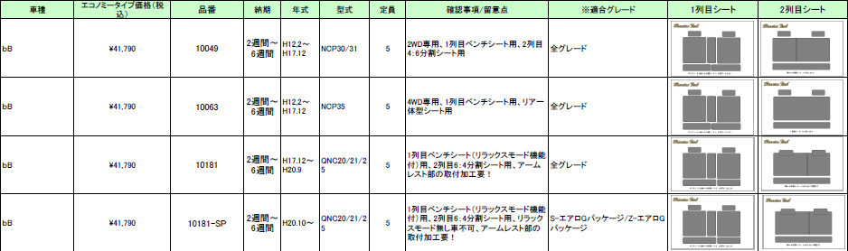 | ハリアンテック bB レザーシートカバー エコノミータイプ | |||||||||||||||||
