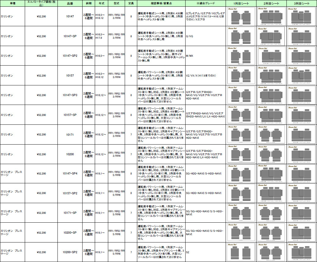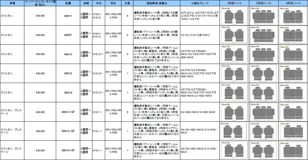 | ハリアンテック エリシオン レザーシートカバー エコノミータイプ | |||||||||||||||||