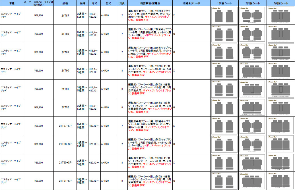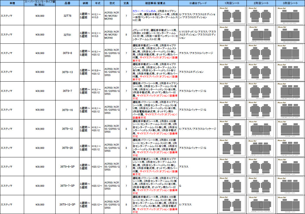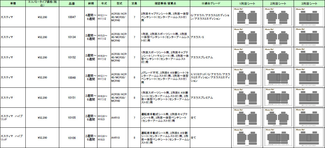 | ハリアンテック エスティマ レザーシートカバー エコノミータイプ | |||||||||||||||||