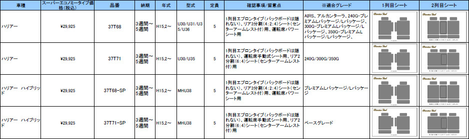 | ハリアンテック ハリアー レザーシートカバー エコノミータイプ | |||||||||||||||||
