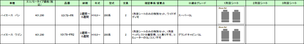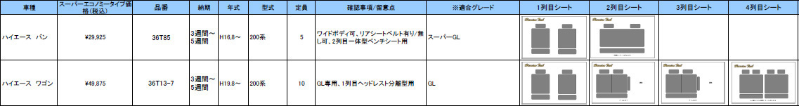 | ハリアンテック ハイエース レザーシートカバー エコノミータイプ | |||||||||||||||||