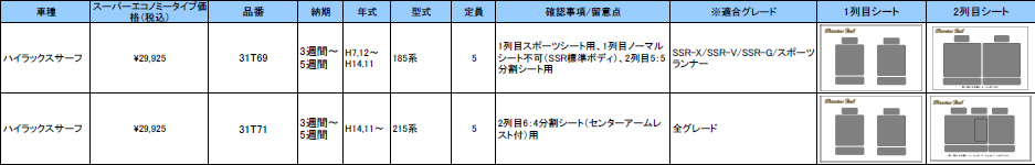 | ハリアンテック ハイラックスサーフ レザーシートカバー エコノミータイプ | |||||||||||||||||
