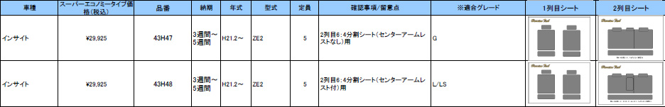 | ハリアンテック インサイト レザーシートカバー エコノミータイプ | |||||||||||||||||