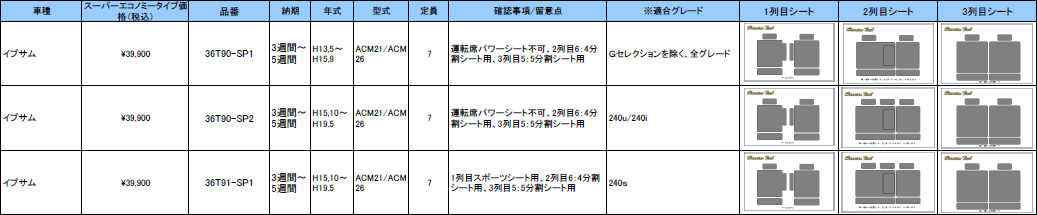 - スーパーエコノミータイプ 2列目(縫製ラインのパターンは車種によって異なります)