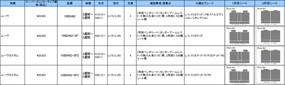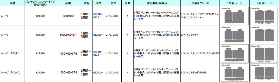| ハリアンテック ムーヴ レザーシートカバー エコノミータイプ | |||||||||||||||||