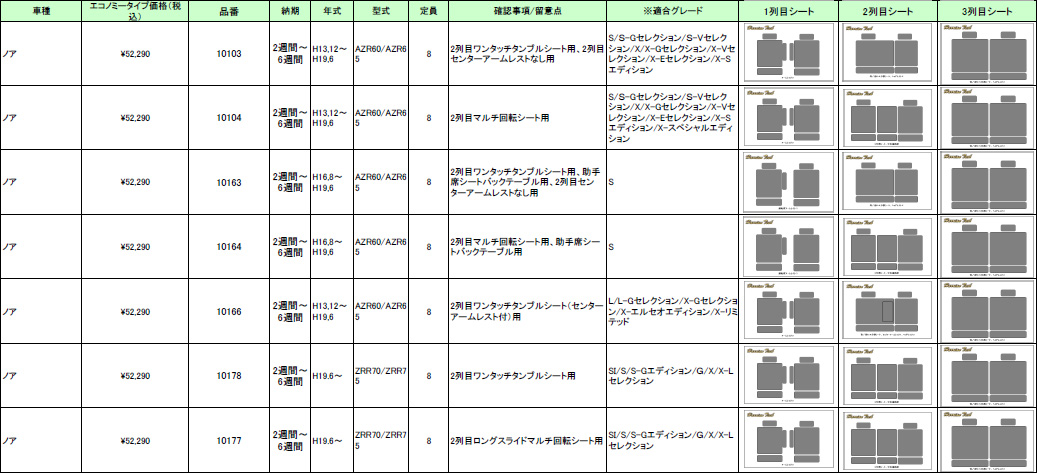 | (要確認) | 下記参照 ・グレード ・助手席 ・2列目 他 | ||||||||||||||||