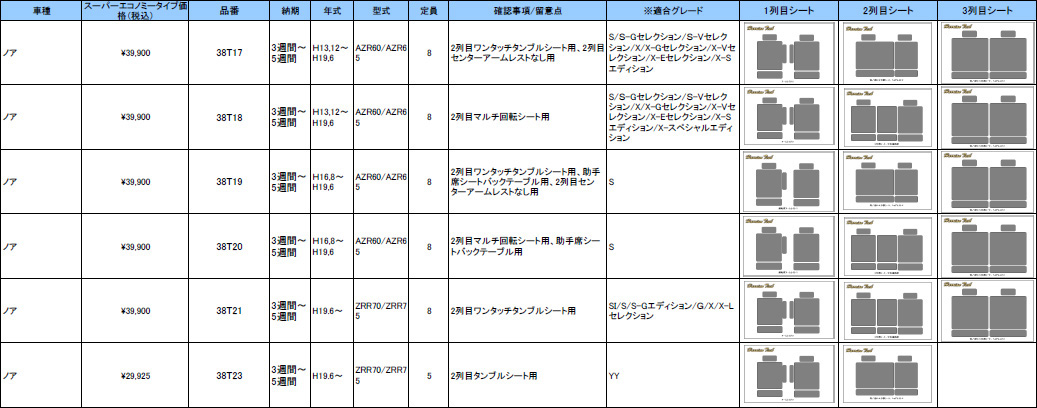 | ハリアンテック ノア・ヴォクシー レザーシートカバー エコノミータイプ | |||||||||||||||||