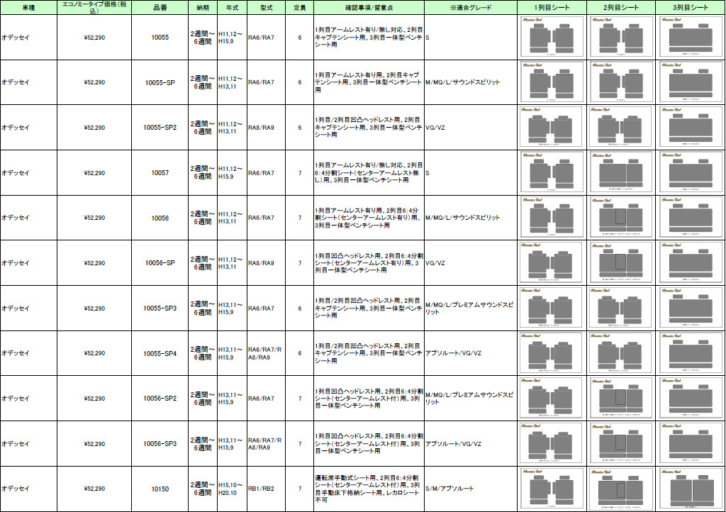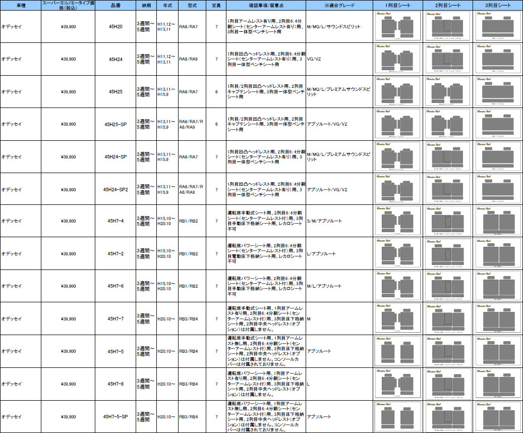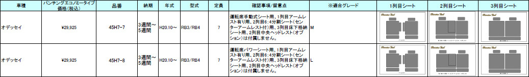 | ハリアンテック オデッセイ レザーシートカバー エコノミータイプ | |||||||||||||||||