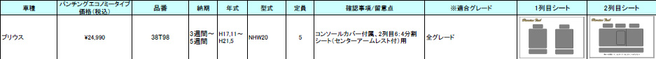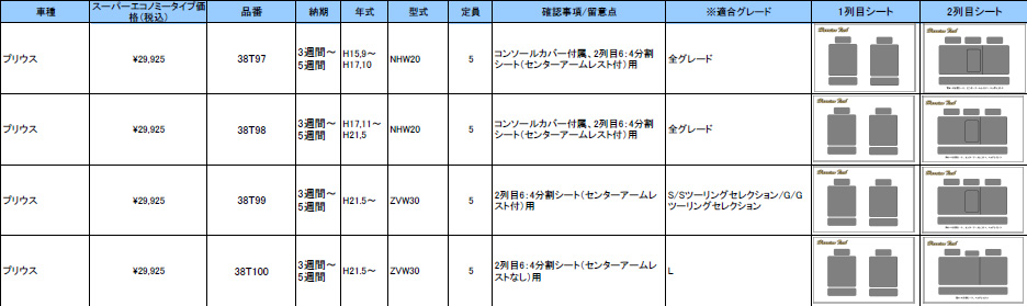 | ハリアンテック プリウス レザーシートカバー エコノミータイプ | |||||||||||||||||