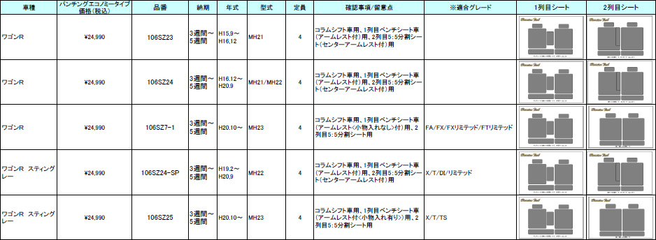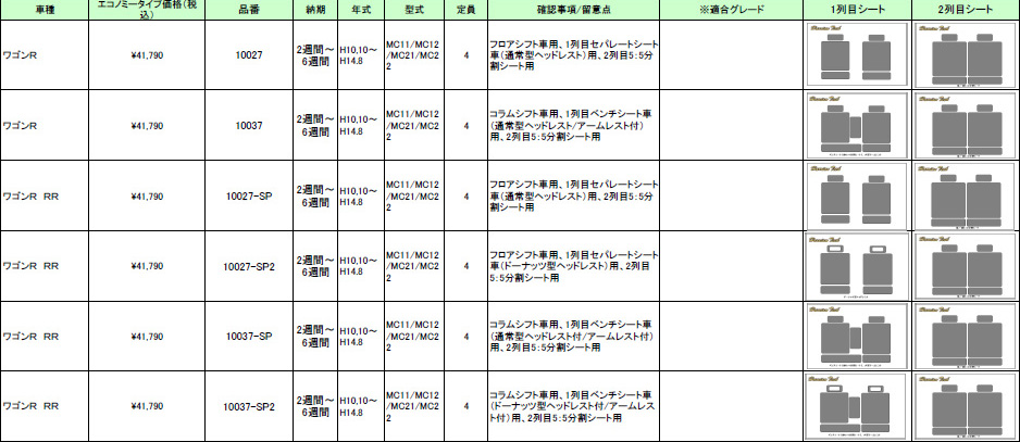 | ハリアンテック ワゴンR レザーシートカバー エコノミータイプ | |||||||||||||||||
