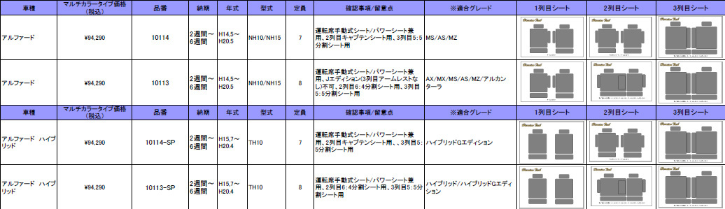 | アルファード仕様確認 | |||||||||||||||||