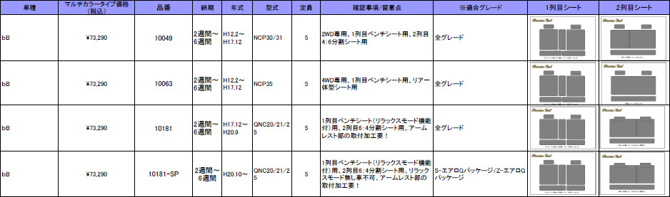 | ハリアンテック bB レザーシートカバー マルチカラータイプ | |||||||||||||||||