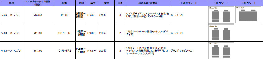 | ハリアンテック ハイエース レザーシートカバー マルチカラータイプ | |||||||||||||||||