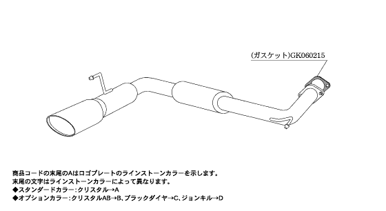 オーバル形状のテール部分にはスワロフスキークリスタルエンブレムプレートを配し、ハイクラスの高級感を演出するリアテールマフラー。
