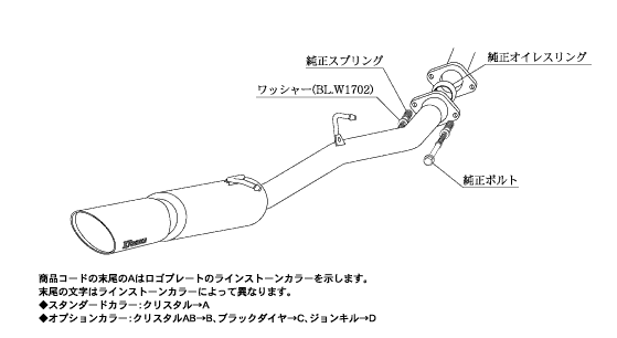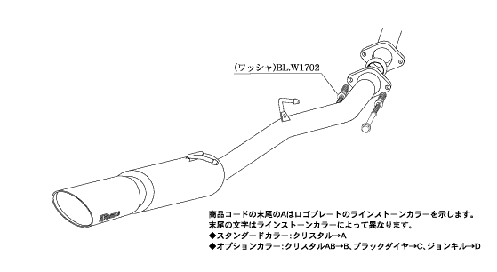 エレガントなテールを演出するために作られたモデルのノーブルシリーズマフラー。オーバル形状のテール部分にはスワロフスキークリスタルエンブレムプレートを配し、ハイクラスの高級感を演出するリアテールマフラー。