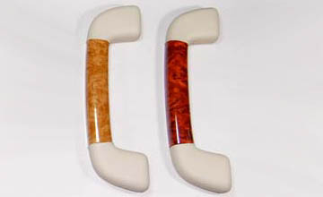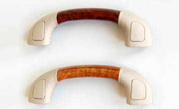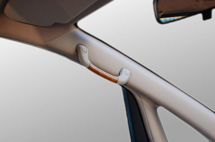 インテリアのウッドコーディネイト。各アシストグリップ部分にも純正ウッドトリムとの近似色ウッドパネルを配することにより、よりハイセンスな空間を演出するアイテムです。