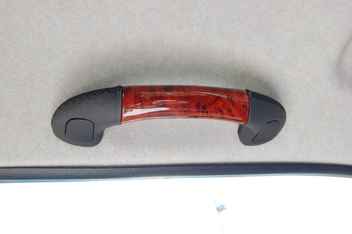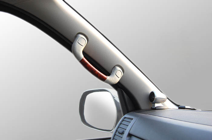 インテリアのウッドコーディネイト。各アシストグリップ部分にも純正ウッドトリムとの近似色ウッドパネルを配することにより、よりハイセンスな空間を演出するアイテムです。