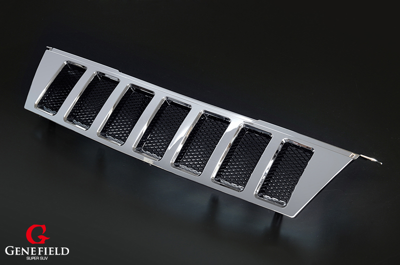 フロントフェイスメイクに欠かせないフロントグリル交換。高級感を高める人気のメッキグリル。縦型7ホールデザインがグリル交換によってフロントフェイスをグッと引き締めるドレスアップパーツです。