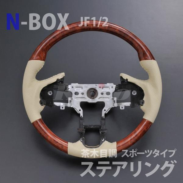 常に手にしているステアリングをウッドとレザーのコンビステアリングにする事により、ドライビングの楽しみが増すこと間違いなしのドレスアップアイテム。