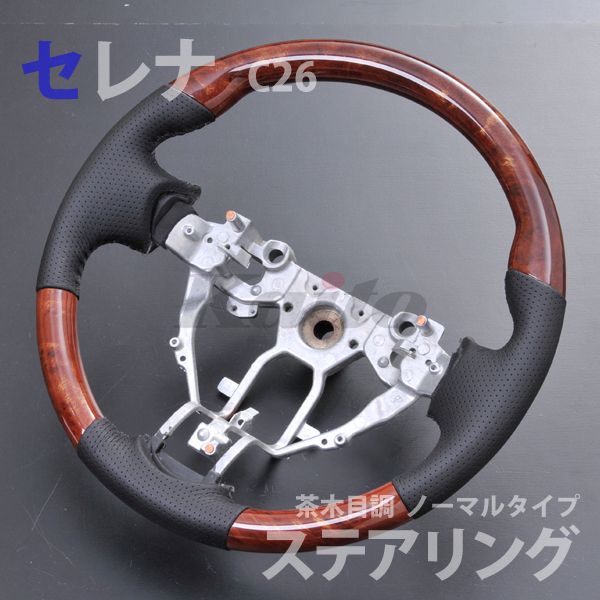 常に手にしているステアリングをウッドとレザーのコンビステアリングにする事により、ドライビングの楽しみが増すこと間違いなしのドレスアップアイテム。