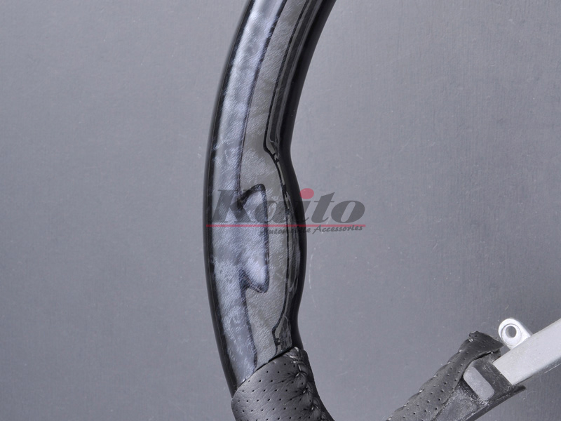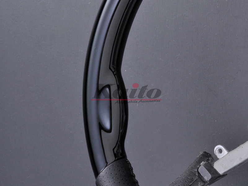 ウッド部分は本木目と遜色ない木目調のクオリティで、スポーツとエレガントを両立したウッドステアリングとなっております。