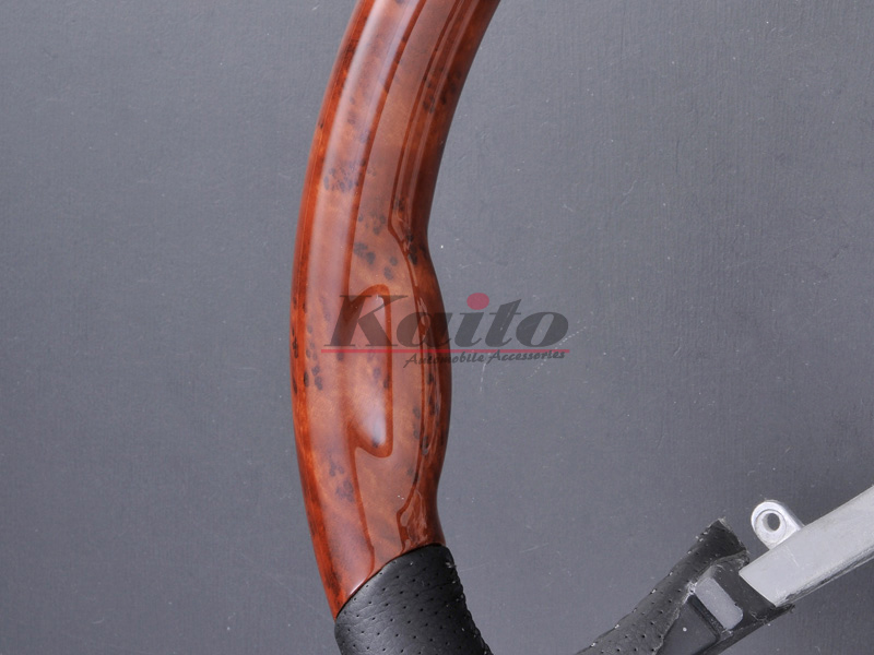 常に手にしているステアリングをウッドとレザーのコンビステアリングにする事により、ドライビングの楽しみが増すこと間違いなしのドレスアップアイテム。
