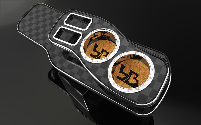 人気パーツの助手席用フロントテーブル。定番中の定番アイテムですが、ドリンクホルダーリング部分のデザインを販売元のメーカーロゴなどで装飾せずに車種名のbB文字を入れることでブランドに拘っている感を払拭。オーナーしかわからないブランド名ではなく、誰もがわかる車種名で印象を高めるフロントテーブルです。